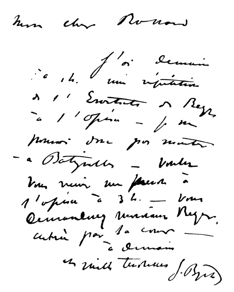 lettre de Georges Bizet à M. Rolland (collection de M. Charles Malherbe)