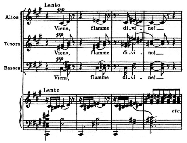 Wagner ! Wagner ! ... Je me revois dans la petite mansarde du boulevard de Clichy, d'où l'on n'apercevait qu'un morceau de ciel au-dessus d'une cour sombre, tout en haut de cette maison où habitait une Louise qui n'avait pas encore de « leit-motiv ». Le soir j'écoutais, les yeux clos, les préludes de Wagner, qu'Alfred Bachelet, l'âme passée aux doigts, jouait sur notre misérable piano. Quelle révélation ! Quel bouleversement en mon esprit nourri de classiques ! Quelle ivresse profonde, me brûlant des nuits entières de l'affolant désir de produire !