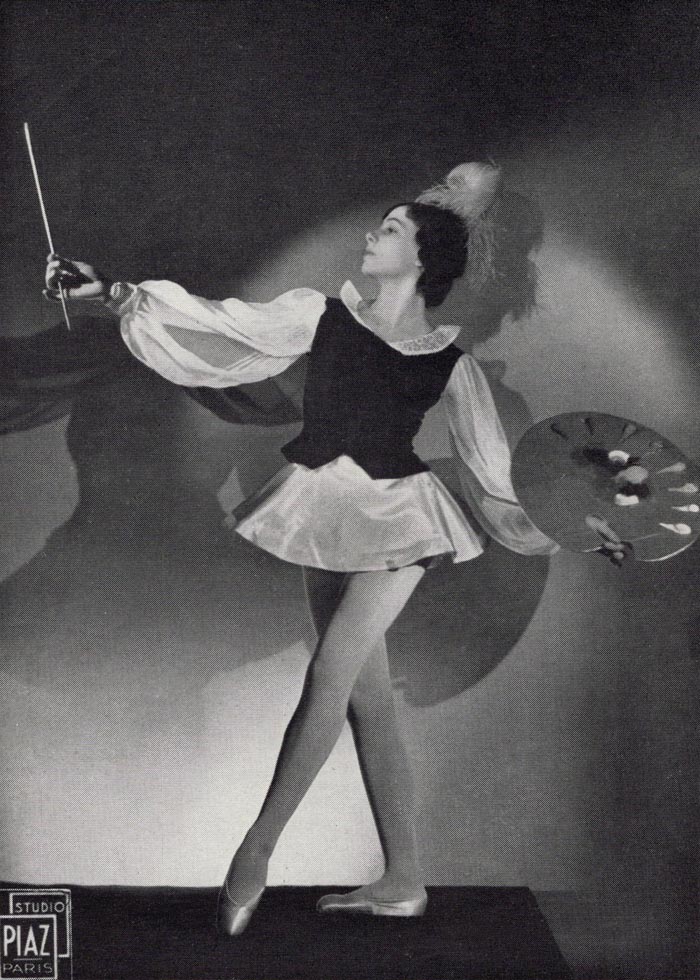 En 1935, quelques jours avant d'accéder au grade de Grand sujet dans la hiérarchie de l'Ecole de danse de l'Opéra, Yvette Chauviré présentait au cours d'une fête organisée Salle Pleyel sa première chorégraphie. Elle y affirmait à la fois ses dons de future danseuse étoile et son goût pour la peinture qui demeure son passe-temps favori. [photo Studio Piaz]