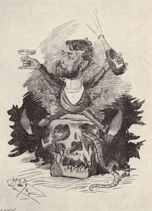 « Qu'il s'en est dépensé de talent, dans cette célèbre taverne du boulevard Rochechouart, aujourd'hui disparue ! Elle a rejoint dans la légende la brasserie des Martyrs, chère aux Parnassiens ; le club des Haschischins, où fréquenta Baudelaire ; l'impasse du Doyenné, où fraternisaient Gérard de Nerval, Gautier et Petrus Borel. Entre tous ces campements de bohémiens, le Chat-Noir paraît bien avoir été le plus pittoresque. Un chat en potence se balançait au-dessus de la porte, de l'huis, plutôt, auraient dit les romantiques, lesquels eussent retrouvé là le bric-à-brac obligatoire de leurs orgies : des tables et des sièges de bois, dans le style du moyen âge ; aux fenêtres, des vitraux ; sur les murs, des tapisseries. Une vaste cheminée surgissait, garnie d'énormes landiers, avec des trophées d'armes et les inévitables têtes de mort. Des tableaux, çà et là, brossés par les habitués du lieu, dénonçaient la libre fougue de la vingt-cinquième année. Et c'était dans ce décor fantastique, une non moins fantastique mêlée d'écrivains et de peintres, de sculpteurs et de musiciens, de journalistes et d'étudiants, d'employés et de viveurs, sans parler des modèles, des demi-mondaines, et parfois des vraies grandes dames en quête d'impressions pimentées, le tout présidé par un personnage de haute mine, la barbe rouge aiguisée en pointe, l'œil gouailleur, la lèvre impudente, qui s'intitulait lui-même gentilhomme cabaretier. Il s'était plus modestement et plus justement défini, dans une annonce : « Le Chat-Noir, cabaret Louis XIII, fondé en 1114, par un fumiste ! » Une arrière-salle, exhaussée de trois marches, s'appelait l'Institut. — Déjà !... un tout petit commencement d'un tout petit duché d'Otrante ! — Ces trois marches servaient de piédestal aux poètes, qui venaient là le vendredi — le Chat-Noir avait pris un jour, comme une jolie femme — déclamer leurs œuvres. Tous les groupes d'alors étaient représentés dans ces séances : les macabres et les hirsutes, les anciens hydropathes et les néo-décadents, les brutalistes et les symbolistes, les ironistes et les intimistes. Et tous recommençaient la littérature. De chacun d'eux allait dater une ère nouvelle. Où sont-ils ? aurait ricané Villon, le mauvais garçon, qui avait, comme de juste, sa statue d'ancêtre dans ce pandémonium ».