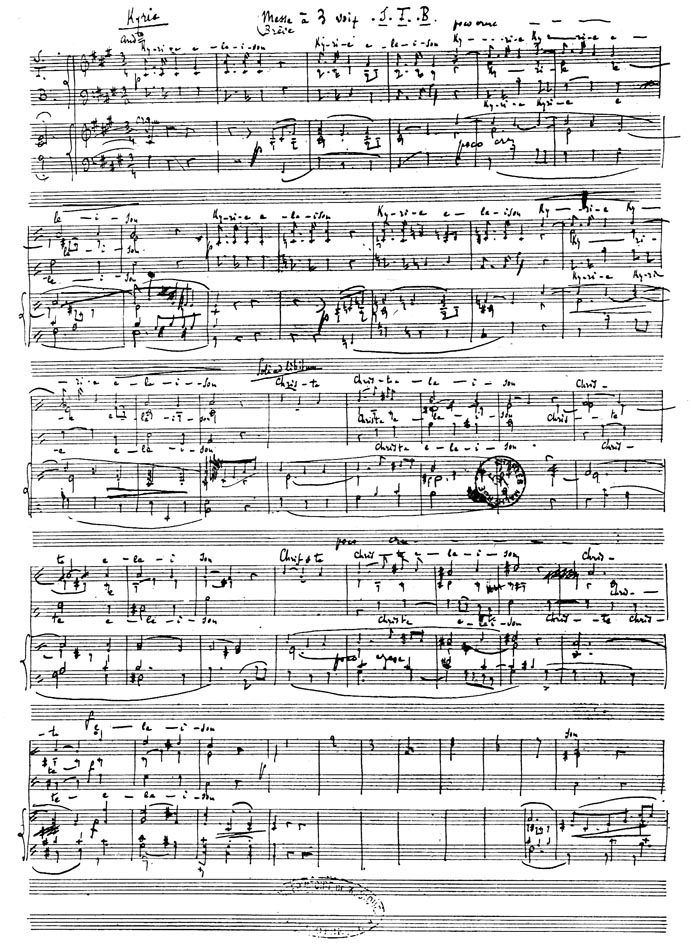 a) Les Kyrie, Gloria, Credo, etc... de la messe devront chacun garder l'unité de composition demandée par leurs textes. Il n'est donc pas permis de les composer en morceaux séparés, de telle façon que chacun de ceux-ci forme une composition musicale complète, et telle qu'on puisse la détacher du reste, et lui en substituer une autre.