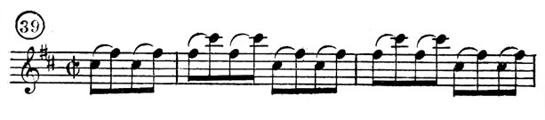 dans une seconde partie, sa période encore courte s'enfle jusqu'à sa terminaison, au lieu de s'affaiblir en un diminuendo ; une troisième fois enfin, elle déploie plus largement sur deux mesures sa ligne sinueuse :