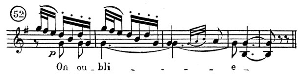 La route du Havre. — Mystérieuse, énigmatique, sans rythme marqué, sans mode apparent par l'absence constante de la médiante, s'engageant sur la dominante frappée à l'unisson par tout l'orchestre, une suite d'accords parfaits se succèdent :