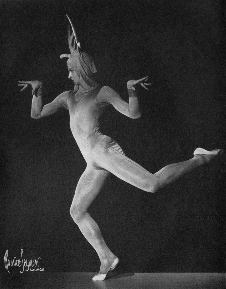 George Skibine dans son premier rôle à Monte-Carlo, le Cerf de la 7e Symphonie. Après avoir travaillé avec son père, Preobrajenska et Lifar, après avoir fait partie des Ballets de la Jeunesse et tout en demeurant à Tabarin, George Skibine s'est fait connaître du monde de la danse. En avril 1938, Massine l'engage dans le Corps de Ballet de Monte-Carlo. C'est là qu'il fit son réel apprentissage. [photo Maurice Seymour]