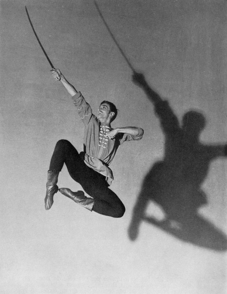 Un saut très impressionnant de George Skibine dans son ballet Prisonnier du Caucase. [photo Lido]