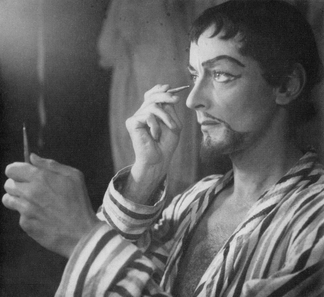 George Skibine se maquille pour le rôle de Don Pedro dans Iñes de Castro, d'Ana Ricarda. Skibine a réussi une composition étonnante du personnage : la fin du ballet où le Prince perd la raison marque un point culminant dans les possibilités dramatiques du danseur. [photo Pamplona]