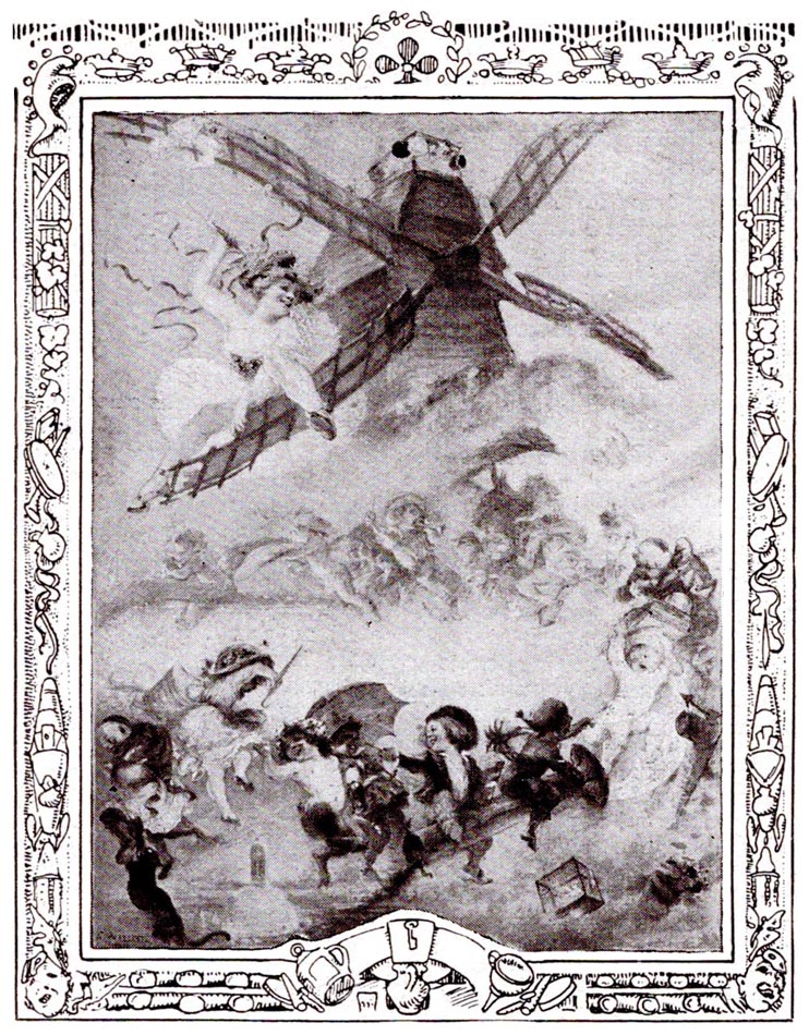 Il y a une dizaine d'années, le peintre Mesplès recevait, dans un galant salon de verdure, les plus jolies danseuses de l'Opéra, ses modèles ordinaires. L'excellent artiste est encore tout ému lorsqu'il évoque ce temps radieux où, pour poser ses études documentées et pittoresques de la vie chorégraphique à l'Opéra, ses gracieux modèles montaient d'un pas léger les flancs abrupts de la rue Girardon. Mesplès avait pour atelier le petit moulin maintenant abattu. En ces temps-là, les ailes symboliques se dressaient au milieu d'une sorte de forêt vierge en miniature où la viorne, la clématite, les glycines et les lierres centenaires formaient un poétique maquis impénétrable aux yeux des simples mortels. Oh ! le bel Eden peuplé de fines divinités, où les déesses s'appelaient les sœurs Mante, Sirède, Antonine Meunier, Barriaux, Denis, Couat ; et, tout en rappelant cet amusant passé, Mesplès nous tend un charmant dessin où la sveltesse exquise de Cléo de Mérode se détache lumineuse, au milieu d'un « cercle de meule » servant d'entrée au vieux jardin fleuri...