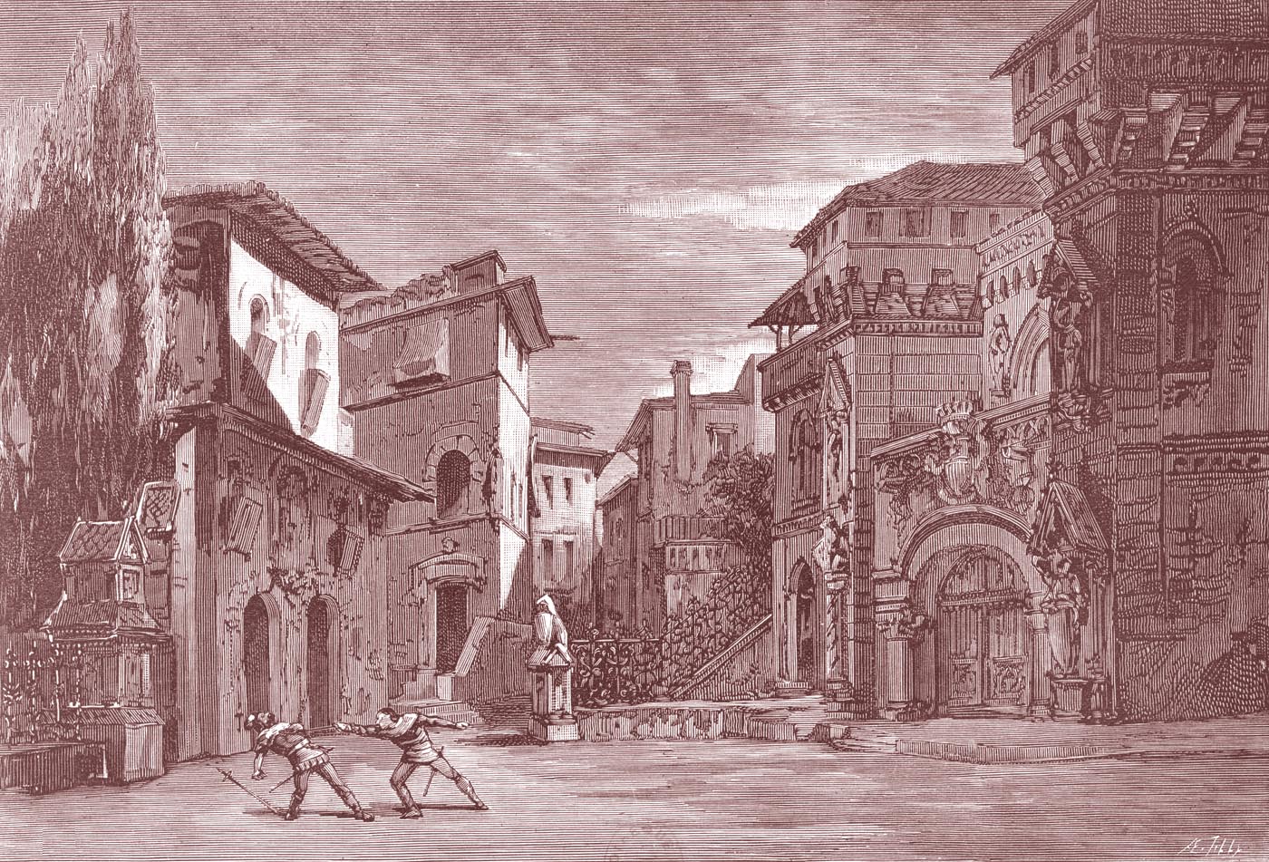décor du 2e tableau de l'Acte IV, dessin d'Adrien Marie