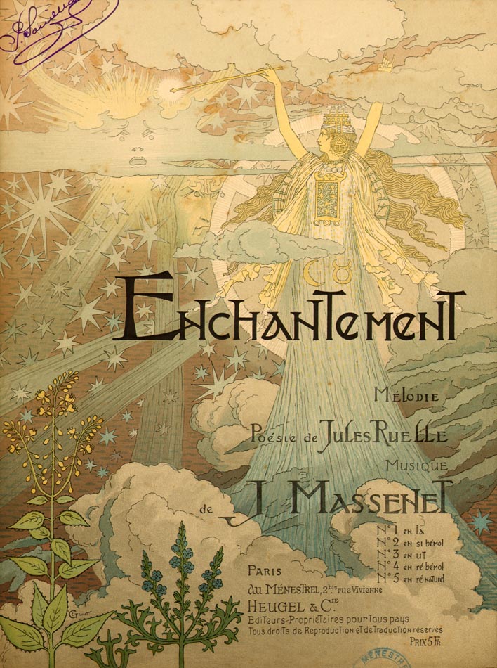 Mélodie, poésie de Jules Victor Antoine RUELLE (Marseille, Bouches-du-Rhône, 29 octobre 1834 – Paris 10e, 23 août 1892*), musique de Jules MASSENET (1890), d'après les Phéniciennes, 4e mouvement du ballet de son opéra Hérodiade.