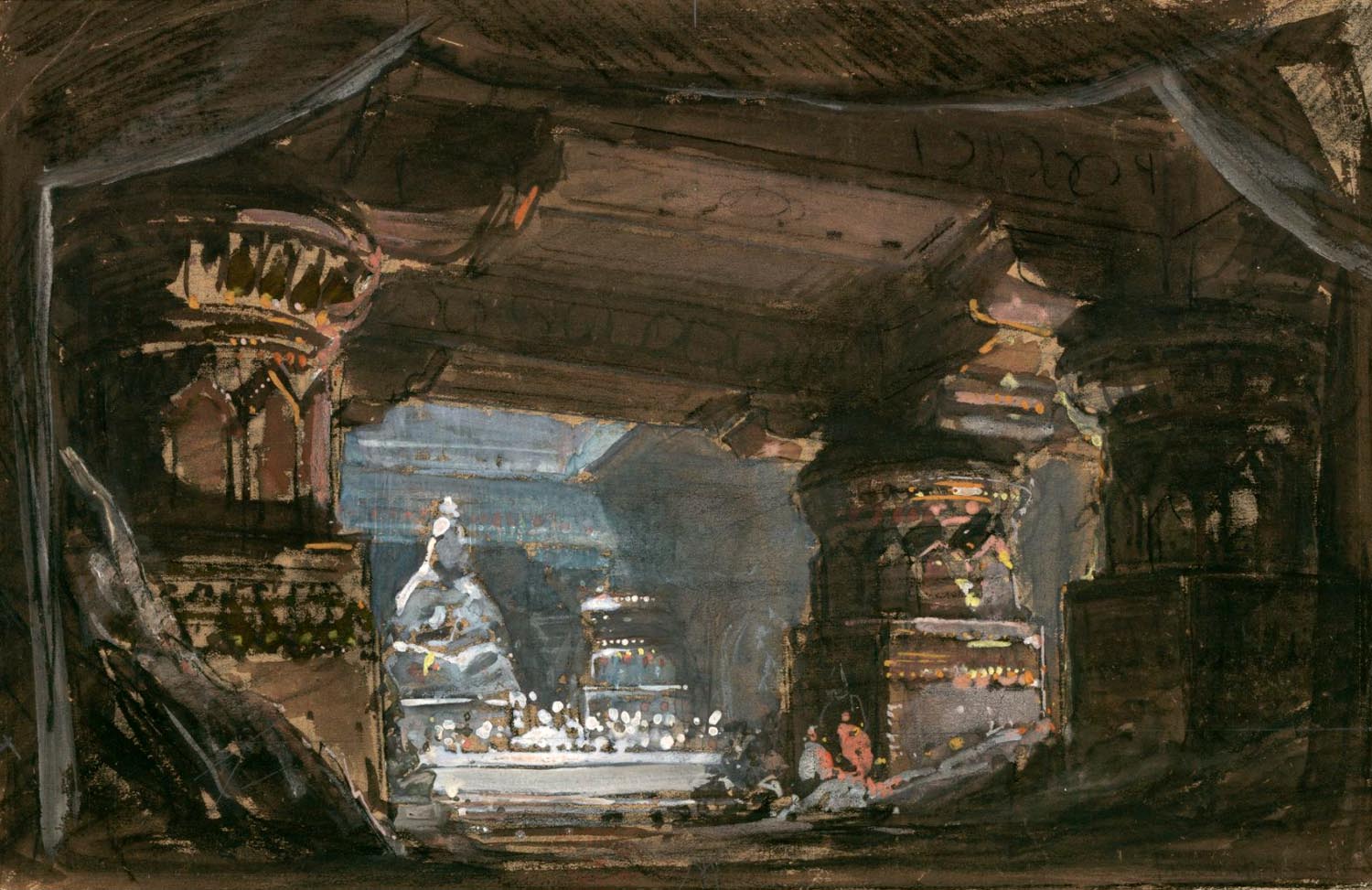 esquisse de décor de l'Acte V tableau IV par Edouard Despléchin (1859) pour la création