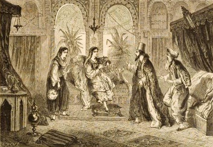 Le théâtre représente une salle du palais des rois de Kachemire.