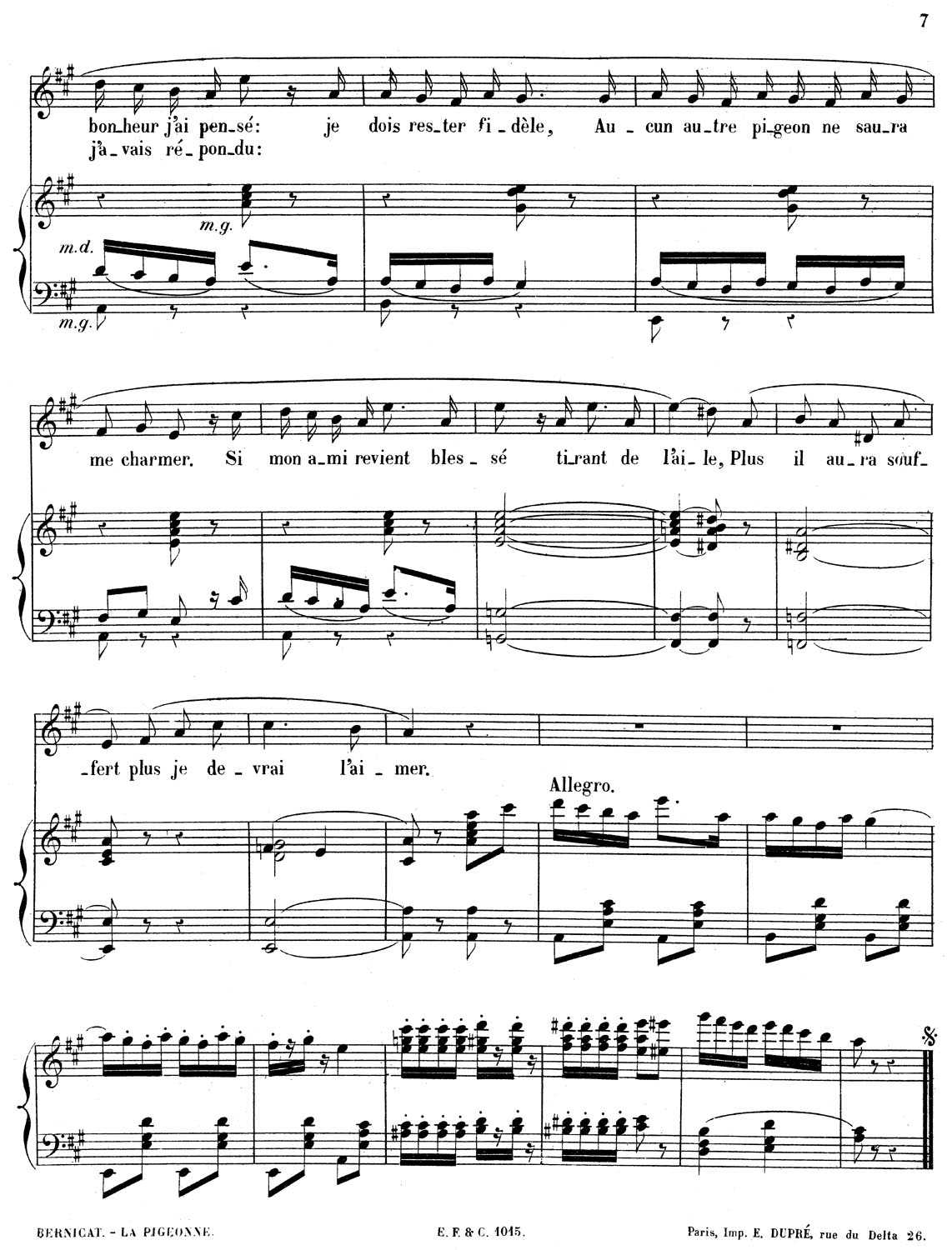 Mélodie (apologue), poésie d'Alphonse SIÉGEL, musique de Firmin BERNICAT, dédiée à Jeanne Granier, chantée par Mlle Duparc à l'Eldorado.