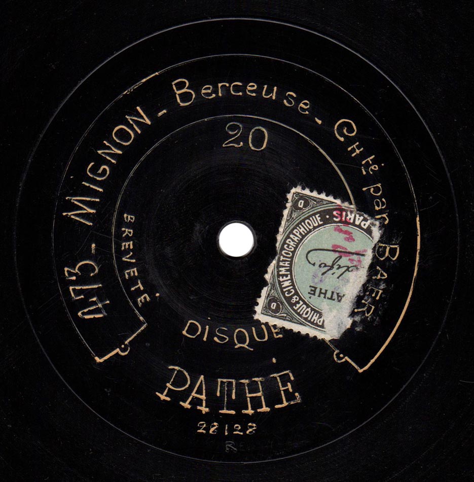Berceuse "De son coeur j'ai calmé la fièvre" extrait de l'acte III de Mignon de Thomas Fernand Baër (Lothario) et Piano Pathé saphir 90 tours n° 473, enr. en 1904