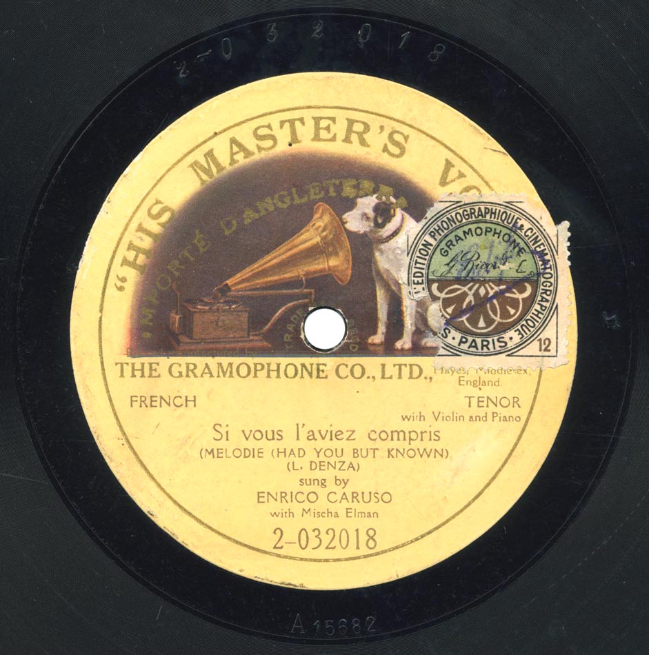 Si vous l'aviez compris (par. Stéphan Bordèse / mus. Luigi Denza) Enrico Caruso, Mischa Elman (violon) et Gaetano Scognamiglio (piano) Victor 89084, mat. C-15682, réédité sur Disque Pour Gramophone 2-032018 et DK 104, enr. à New York le 06 février 1915
