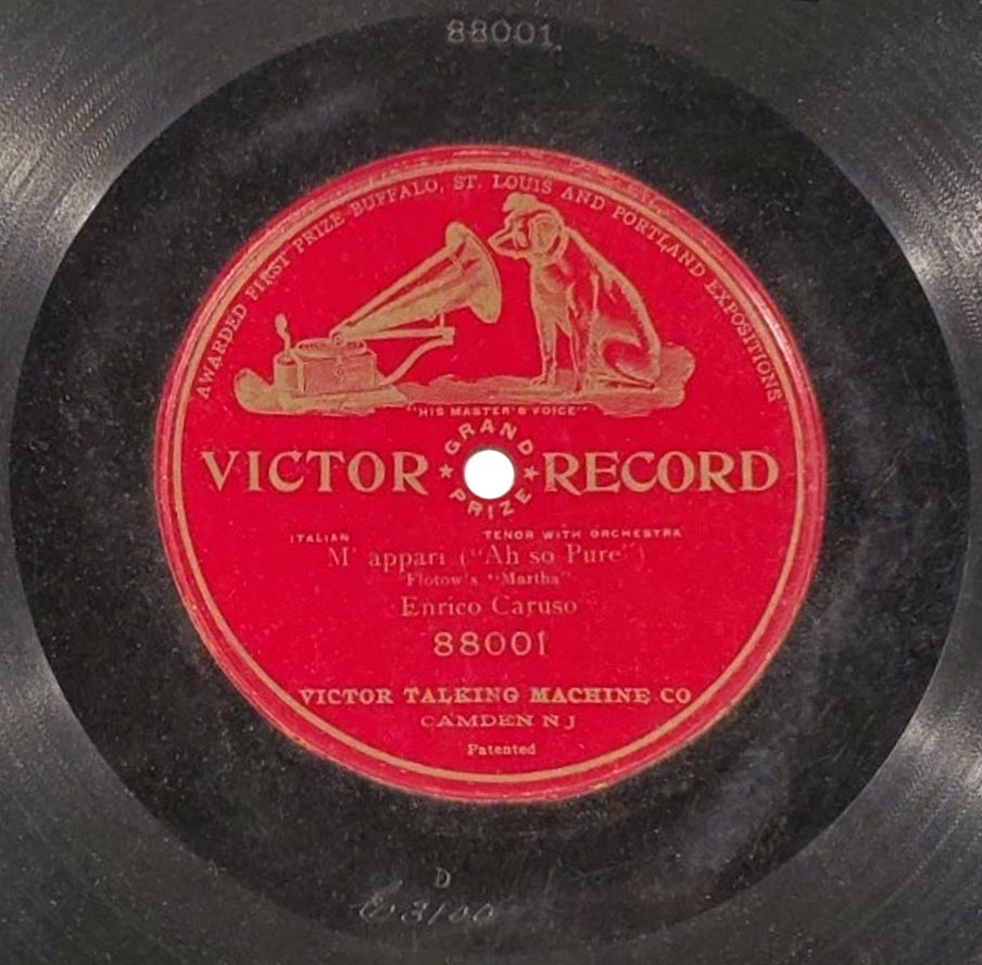 "M'appari tutt' amor" extrait de l'acte III de Martha de Flotow Enrico Caruso (Lionel) et Orchestre dir. Josef Pasternack Victor 88001, mat. C-3100, enr. à New York le 15 avril 1917 (a) réenregistré à Camden, New Jersey, le 15 août 1932 avec le Victor Symphony Orchestra dirigé par Nathaniel Shilkret sur Gramophone DB 1802, mat. 42 1329 (b)