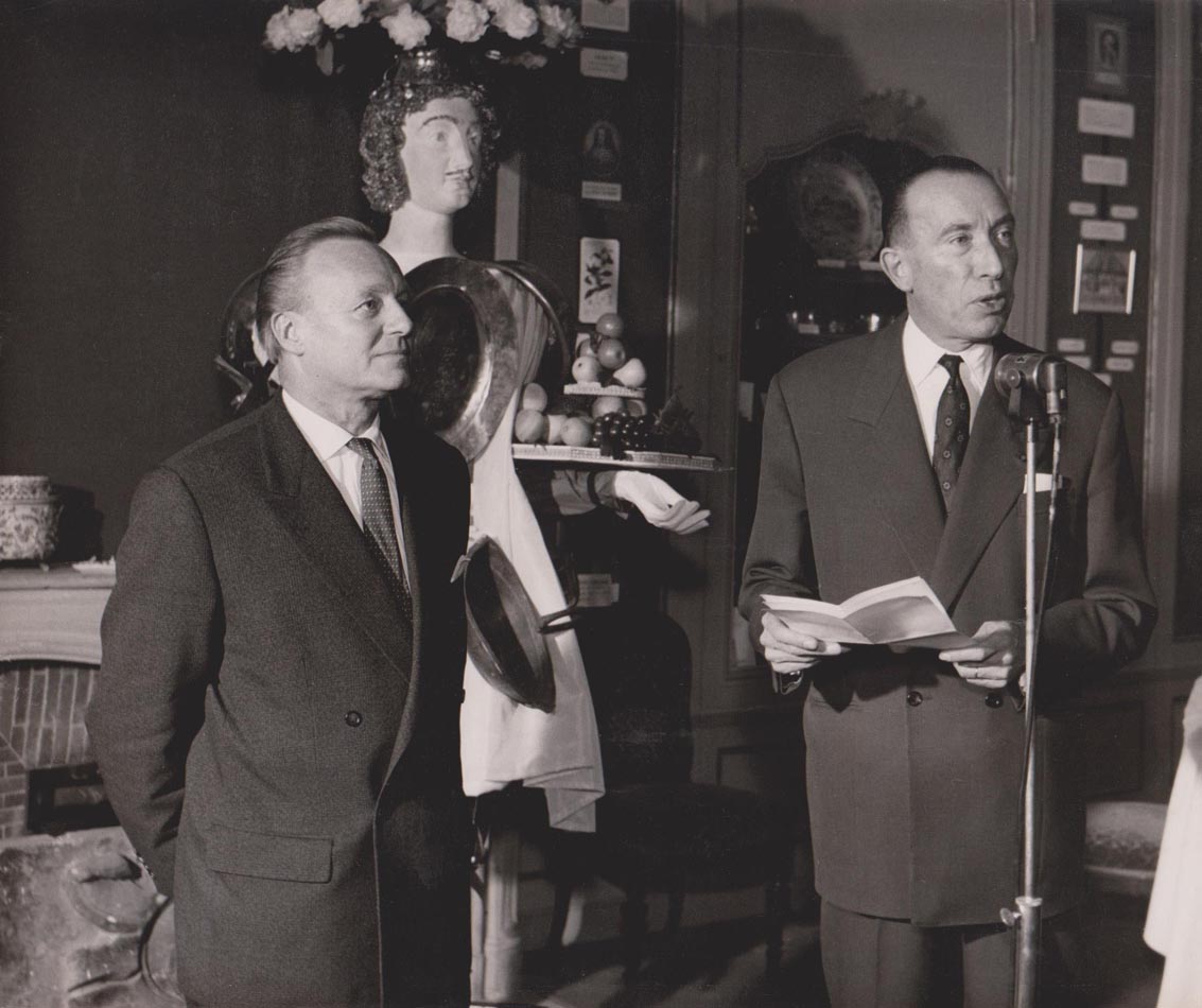 cocktail au Théâtre des Champs-Elysées le 28 octobre 1958 ; de g. à dr. : André Cluytens et Pierre Bourgeois [coll. Emmanuel Jourquin-Bourgeois]