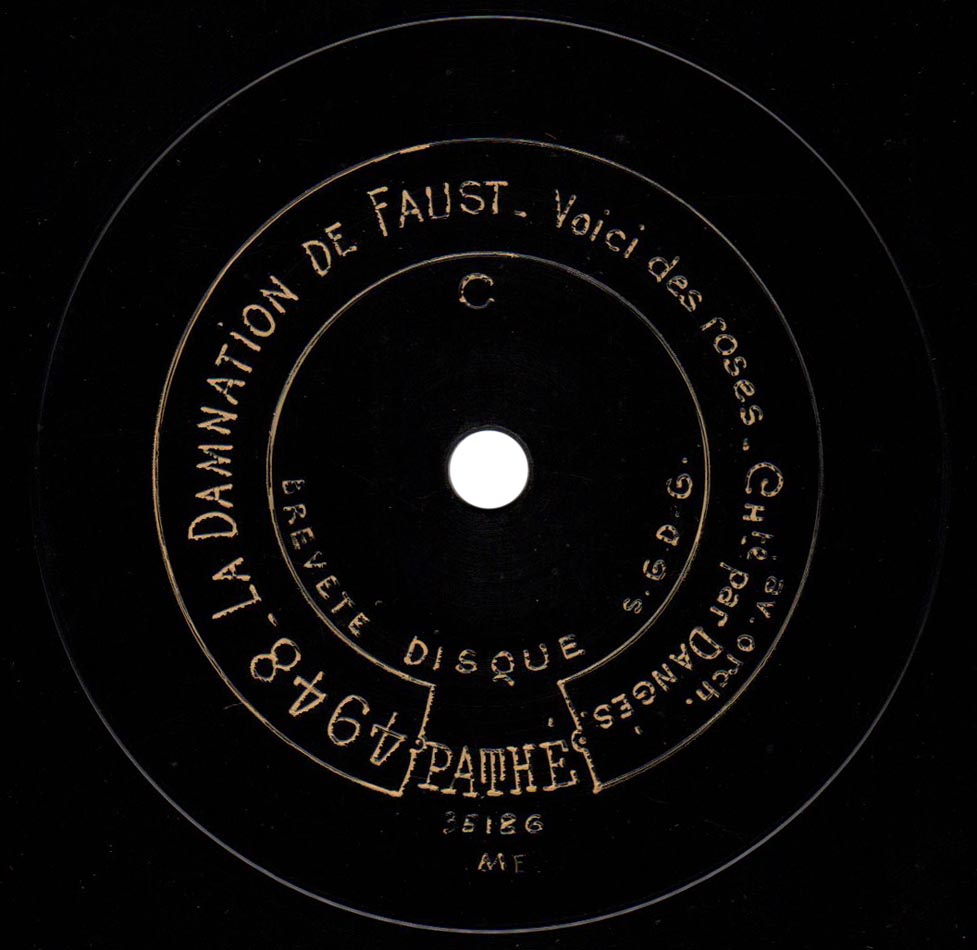 "Voici des roses" extrait de la 2e partie de la Damnation de Faust de Berlioz Henri Dangès (Méphistophélès) et Orchestre Pathé saphir 90 tours n° 4948, enr. en 1908