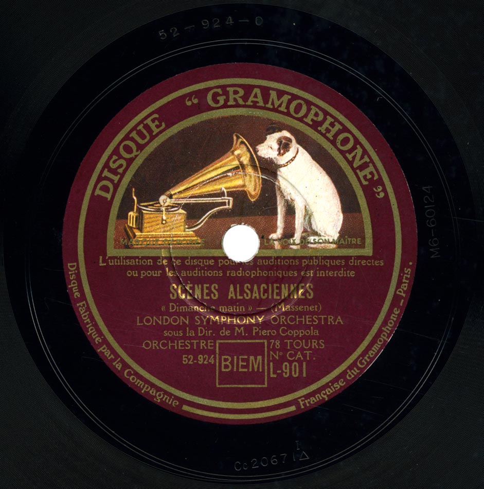 Scènes alsaciennes 1. Dimanche matin ; 2. Au cabaret London Symphony Orchestra dir Piero Coppola Gramophone L 901, mat. 52-924 et 52-925, enr. vers 1930