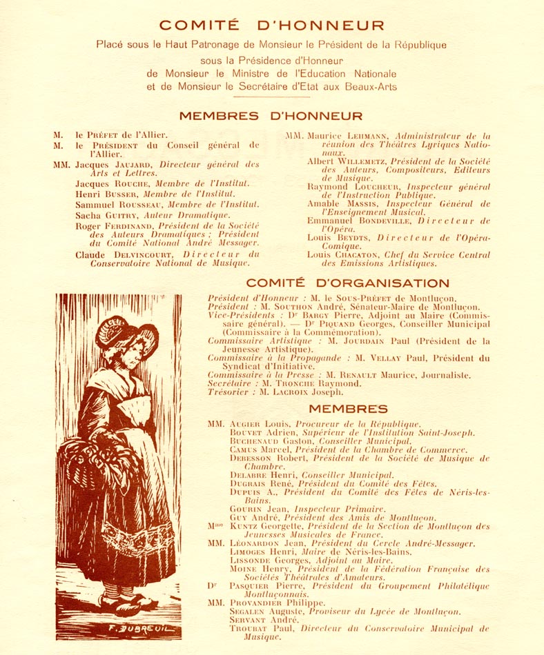 brochure éditée lors de la commémoration du centenaire de la naissance d'André Messager à Montluçon en juillet 1953 [don de la mairie de Montluçon]