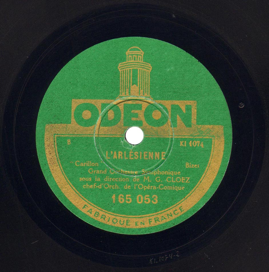 Suite n° 2 : Farandole Grand Orchestre Symphonique dir Gustave Cloëz Odéon 165.054, mat. KI 1076-2, enr. en décembre 1926