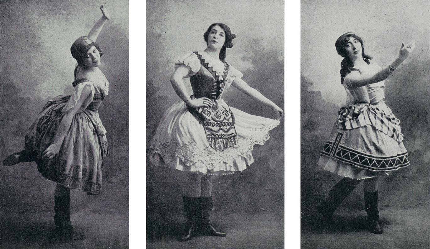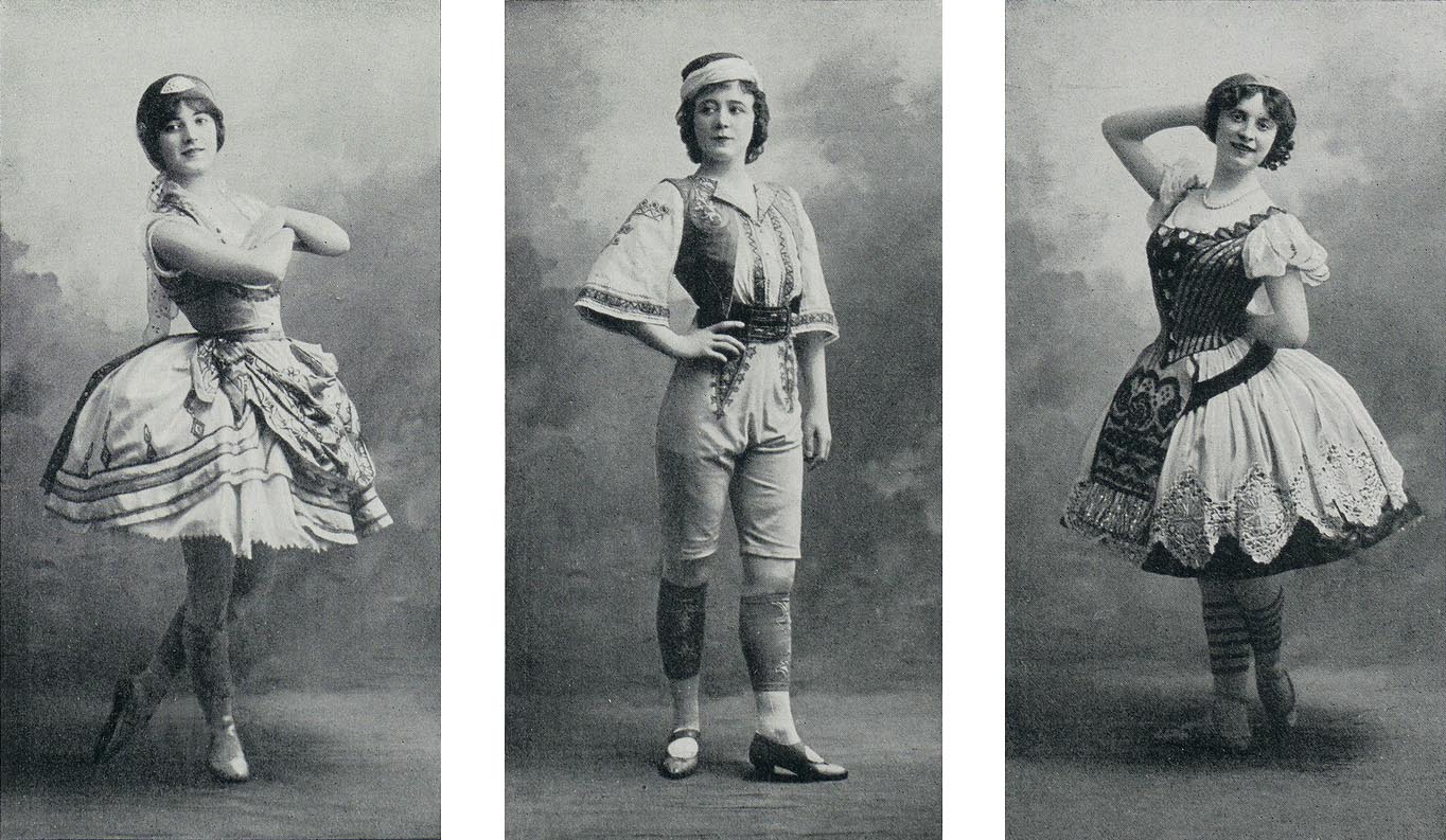 les Deux Pigeons lors de la reprise à l'Opéra de 1912 [de g. à dr.] : Mlles Valsi, Kubler, Kubler jeune [photos Bert]