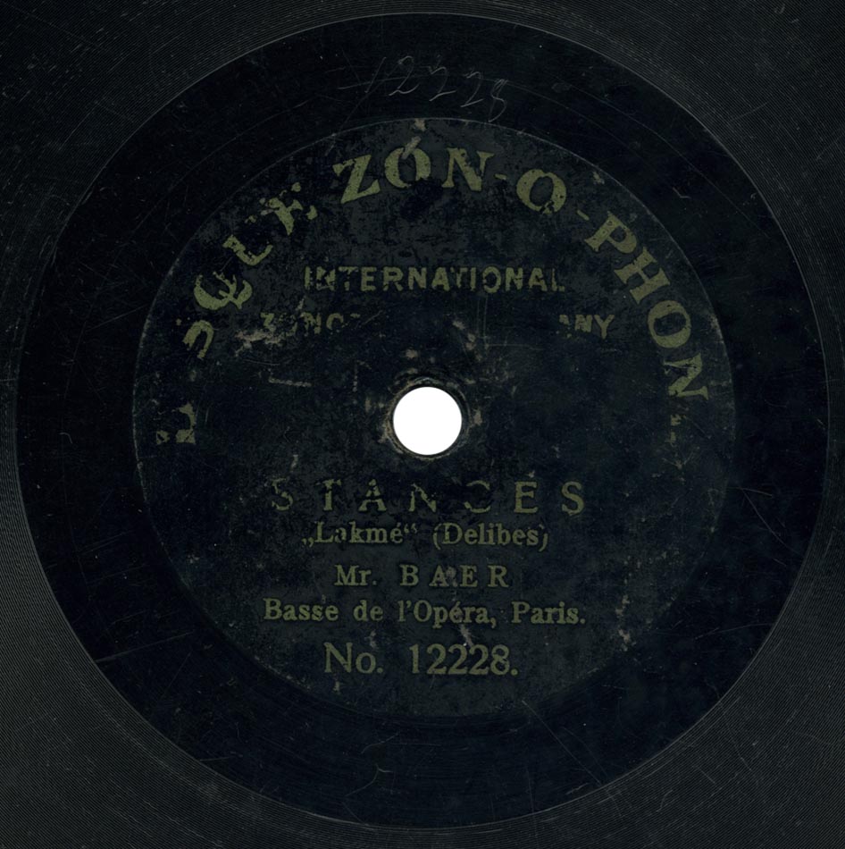 Stances "Lakmé, ton doux regard se voile" extrait de l'acte II de Lakmé de Delibes Fernand Baër (Nilakantha) et Piano Zonophone 12228, enr. à Paris vers 1903