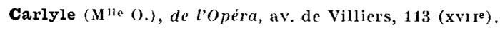 Mlle Carlyle est une artiste de grand style dont la voix de falcon a une souplesse et une puissance en même temps qu’un charme incomparables. Elle est appelée au plus brillant avenir. (la Chronique mondaine, 04 mai 1907)