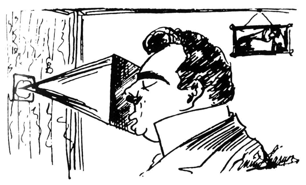autoportrait d'Enrico Caruso, chantant devant un cornet acoustique