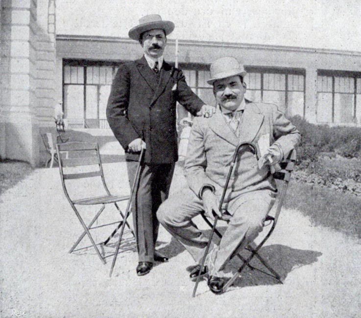 Enrico Caruso et son accompagnateur, le compositeur Richard Barthélemy, sur une terrasse, à Ostende