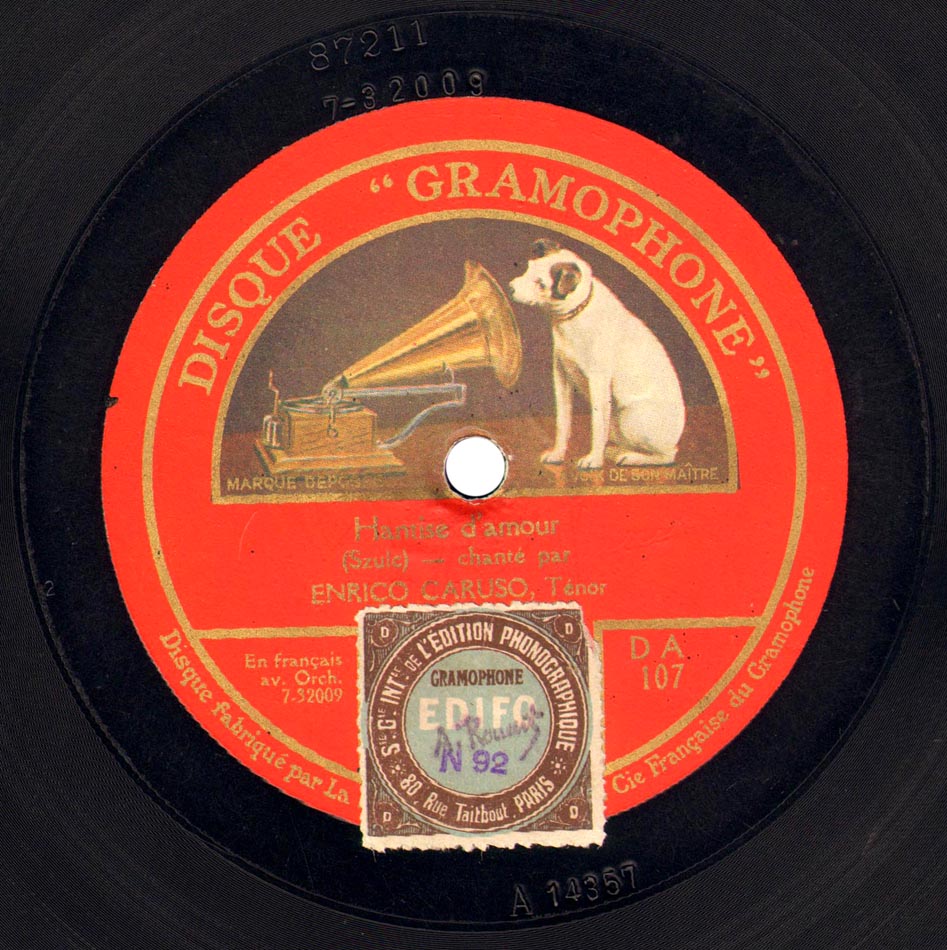 Hantise d'amour (par. Henry Rey-Roise / mus. Josef Szulc) Enrico Caruso et Orchestre dir. Walter B. Rogers Victor 87211, mat. B-14357, réédité sur Gramophone DA 107, mat. 7-32009, enr. à New York le 10 décembre 1914