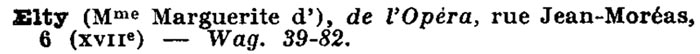 D’Elty, soprano dramatique. Élève de M. Victor Maurel, elle