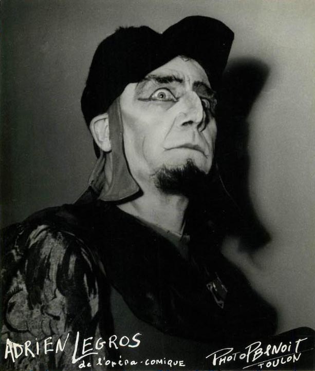 Adrien Legros, basse qui se joue des notes élevées au-dessus de sa tessiture… (le Tout Lyon, 25 janvier 1950)