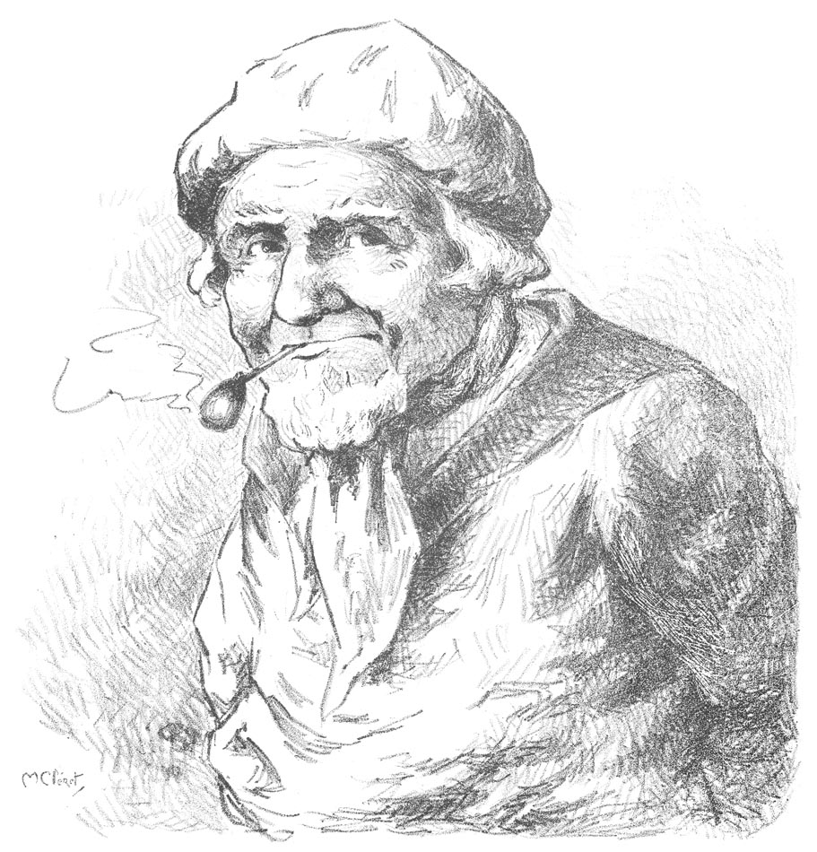 Louis Nucelly (Gillioury) dans la Glu de Gabriel Dupont au Théâtre-des-Arts de Rouen en janvier 1911 [dessin de Maurice Cléret]
