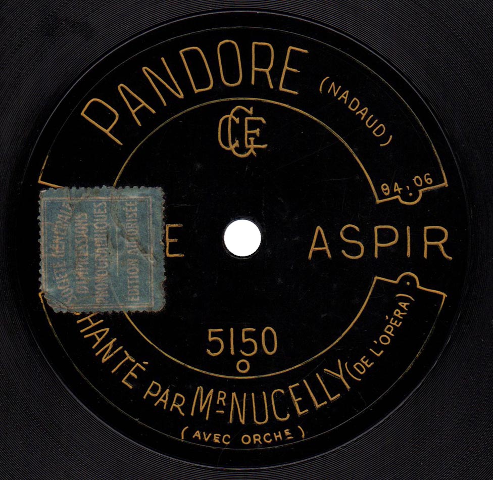 Pandore ou les Deux gendarmes (par. et mus. Gustave Nadaud) Louis Nucelly et Orchestre Aspir 5150, mat. 9406, enr. vers 1912 [incomplet]