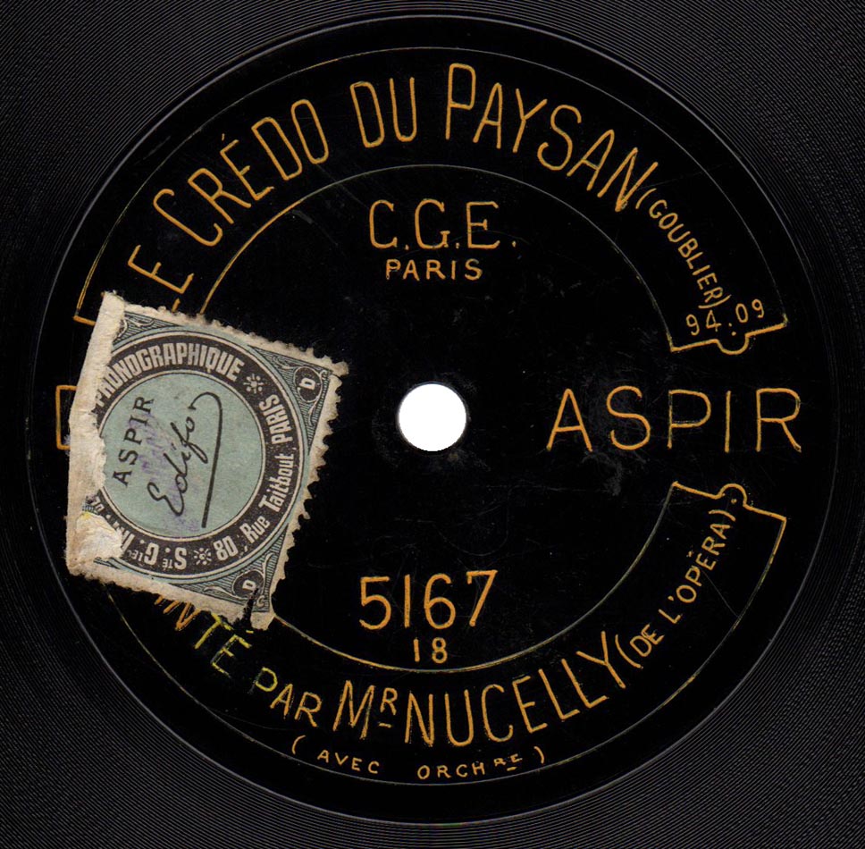 le Credo du paysan (par. Francisque Borel / mus. Gustave Goublier) Louis Nucelly et Orchestre Aspir 5167, mat. 9409, enr. vers 1912