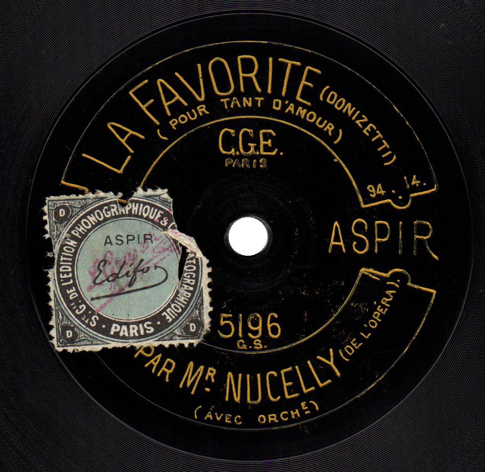 "Pour tant d'amour" extrait de l'acte II de la Favorite de Donizetti Louis Nucelly (le Roi) et Orchestre Aspir 5196, mat. 9414, enr. vers 1912