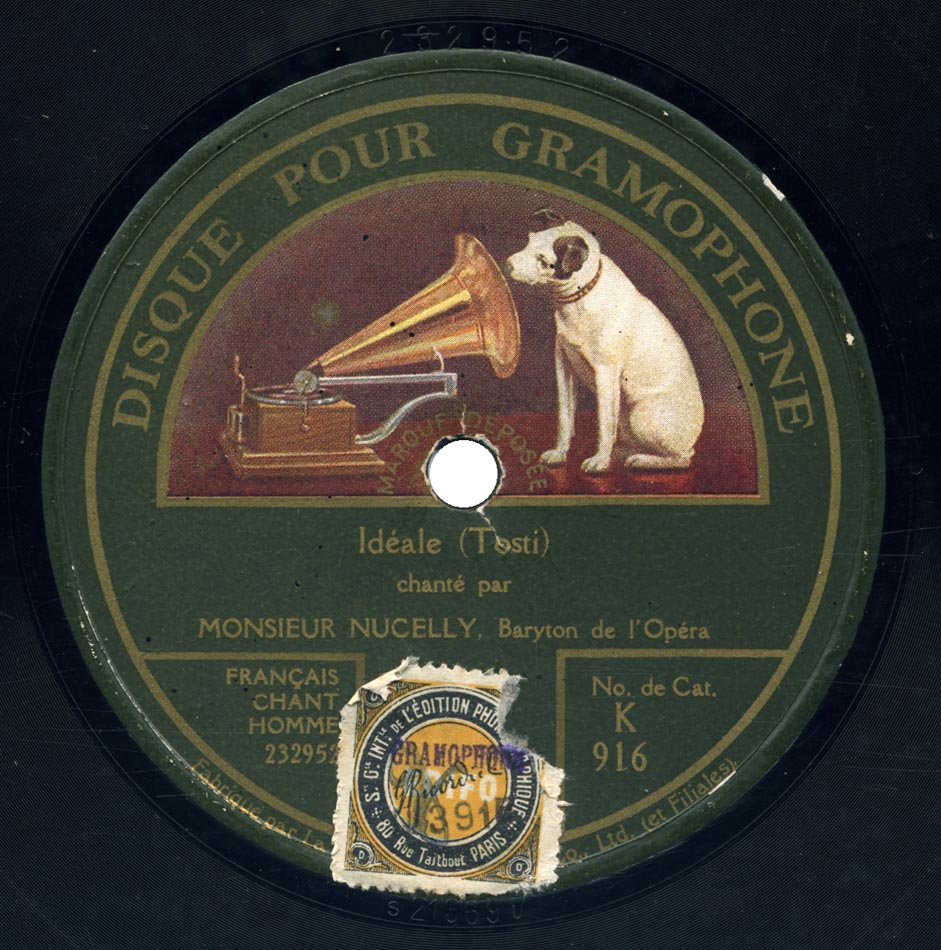 Idéale (mus. Francesco Paolo Tosti) Louis Nucelly et Orchestre Disque Pour Gramophone K 916 [232.952], mat. 21369u, enr. le 19 mai 1920