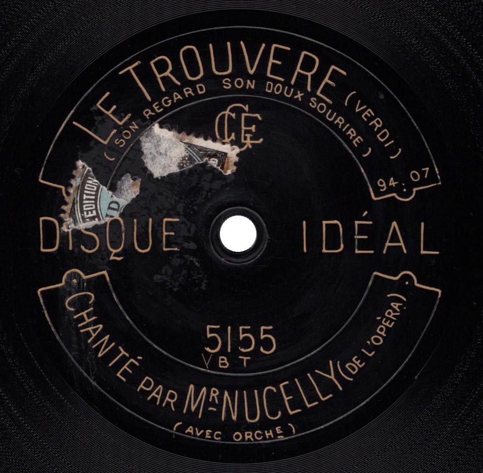 "Son regard, son doux sourire" extrait de l'acte II du Trouvère de Verdi [v. fr. de Pacini] Louis Nucelly (le Comte de Luna) et Orchestre Idéal 5155, mat. 9407, enr. vers 1912