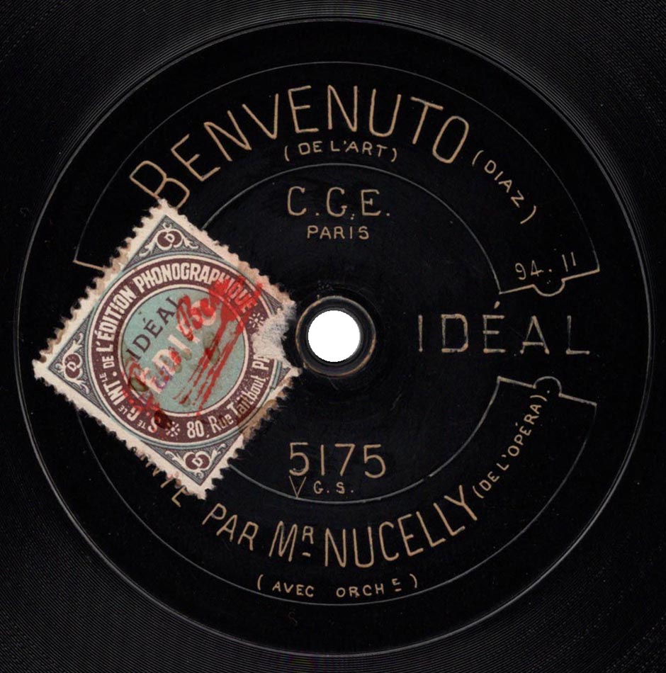 Arioso "De l'art, splendeur immortelle" extrait de Benvenuto de Diaz Louis Nucelly (Benvenuto Cellini) et Orchestre Idéal 5175, mat. 9411, enr. vers 1912
